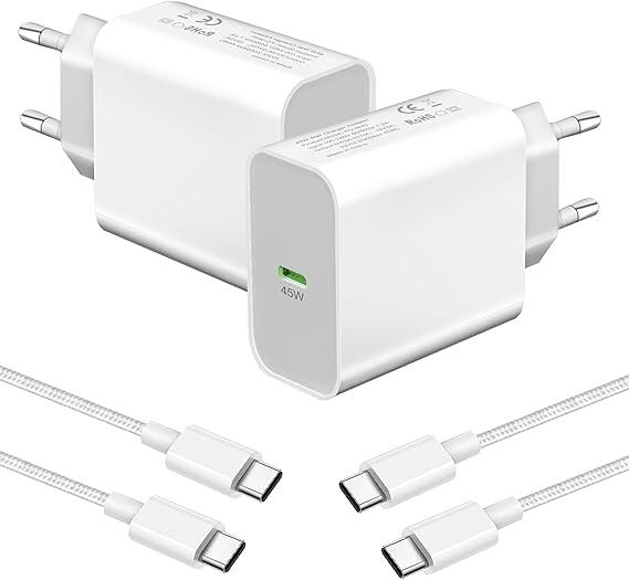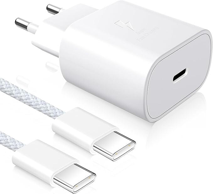 45W Cargador para Samsung Carga Rapida,2-Pack USB C Enchufe y Cable Cargador para Samsung Galaxy S24 Ultra/S25/S23 Plus/S24 FE/S22+/S21,Note 20,Tab S9/S8 S7,A55 A54 A34 A53 5G,Tipo C Adaptador Cabezal